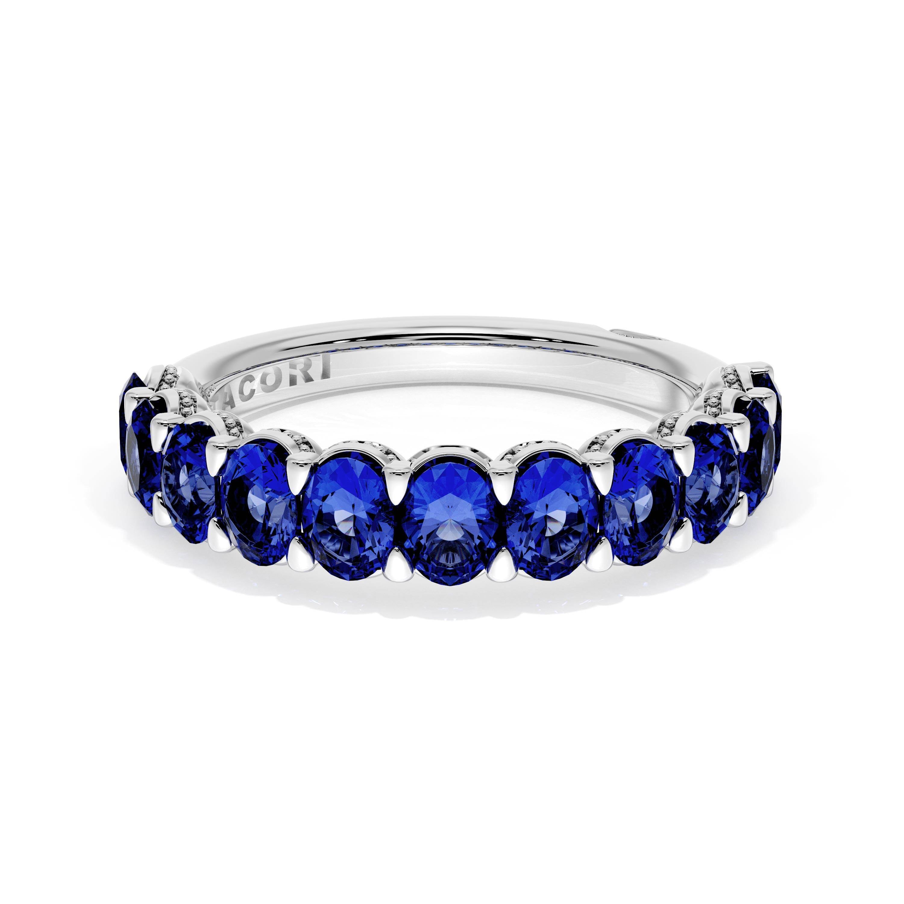 Oval Cut Blue Sapphire Eternity Band in Platinum