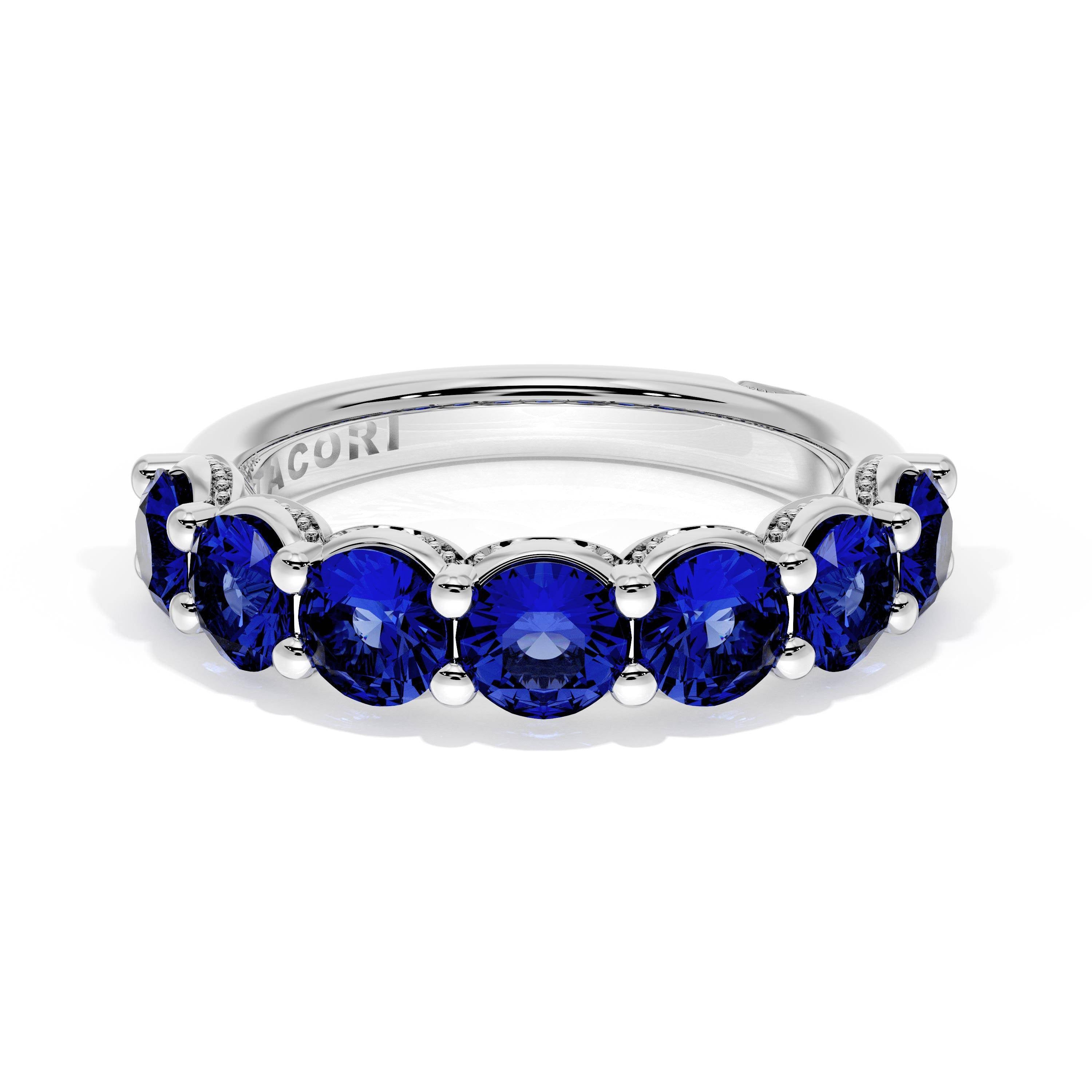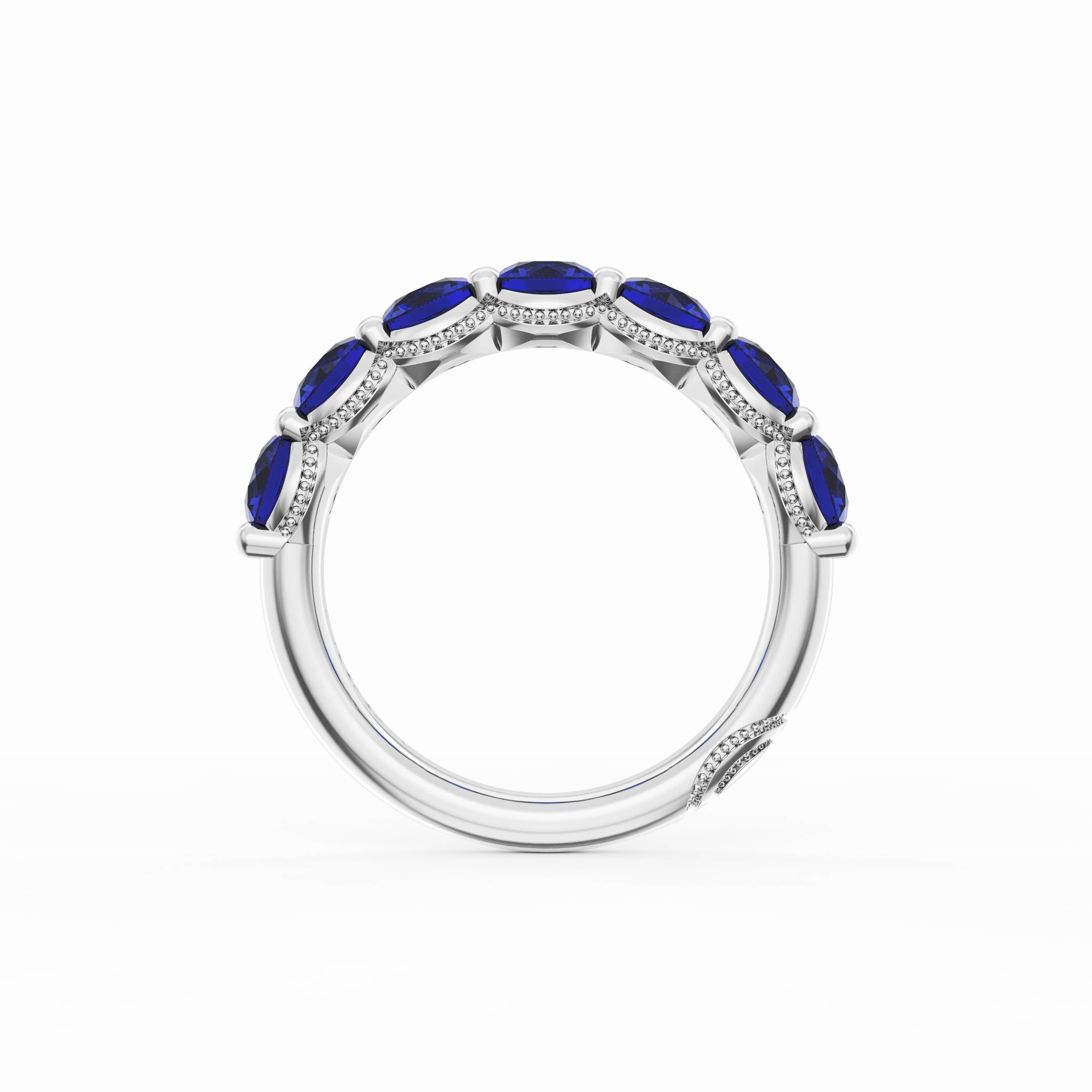 Round Cut Blue Sapphire Eternity Band in 18kt White Gold