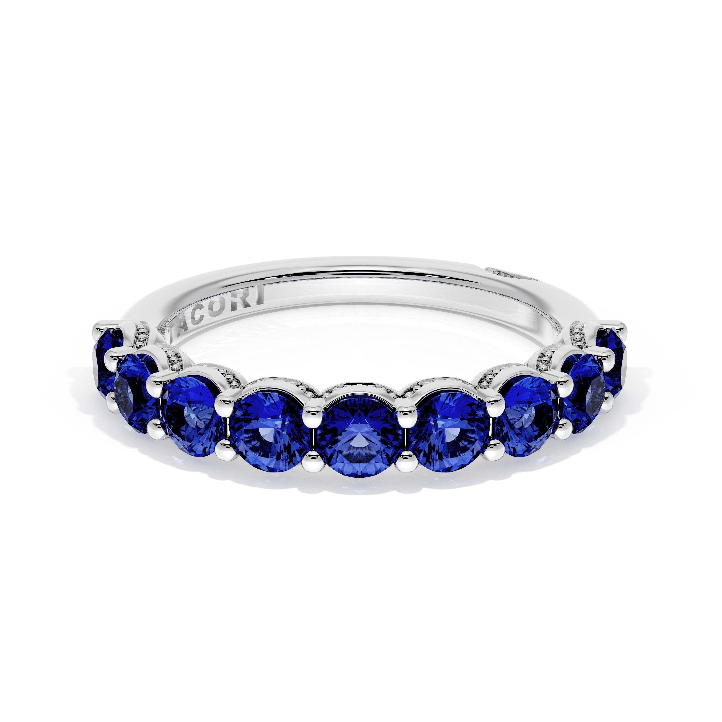 Round Cut Blue Sapphire Eternity Band in Platinum