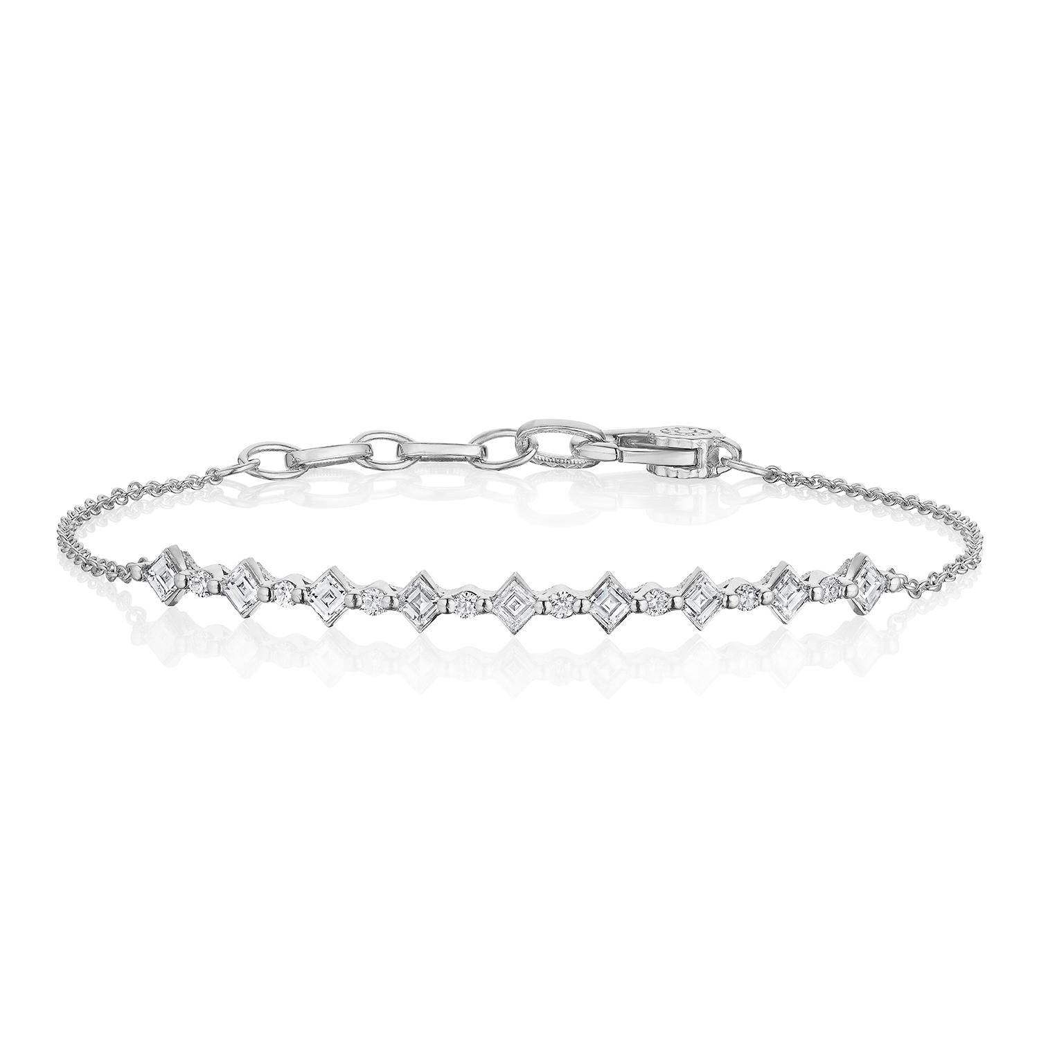 Carré and Round Diamond Bracelet in 18kt White Gold