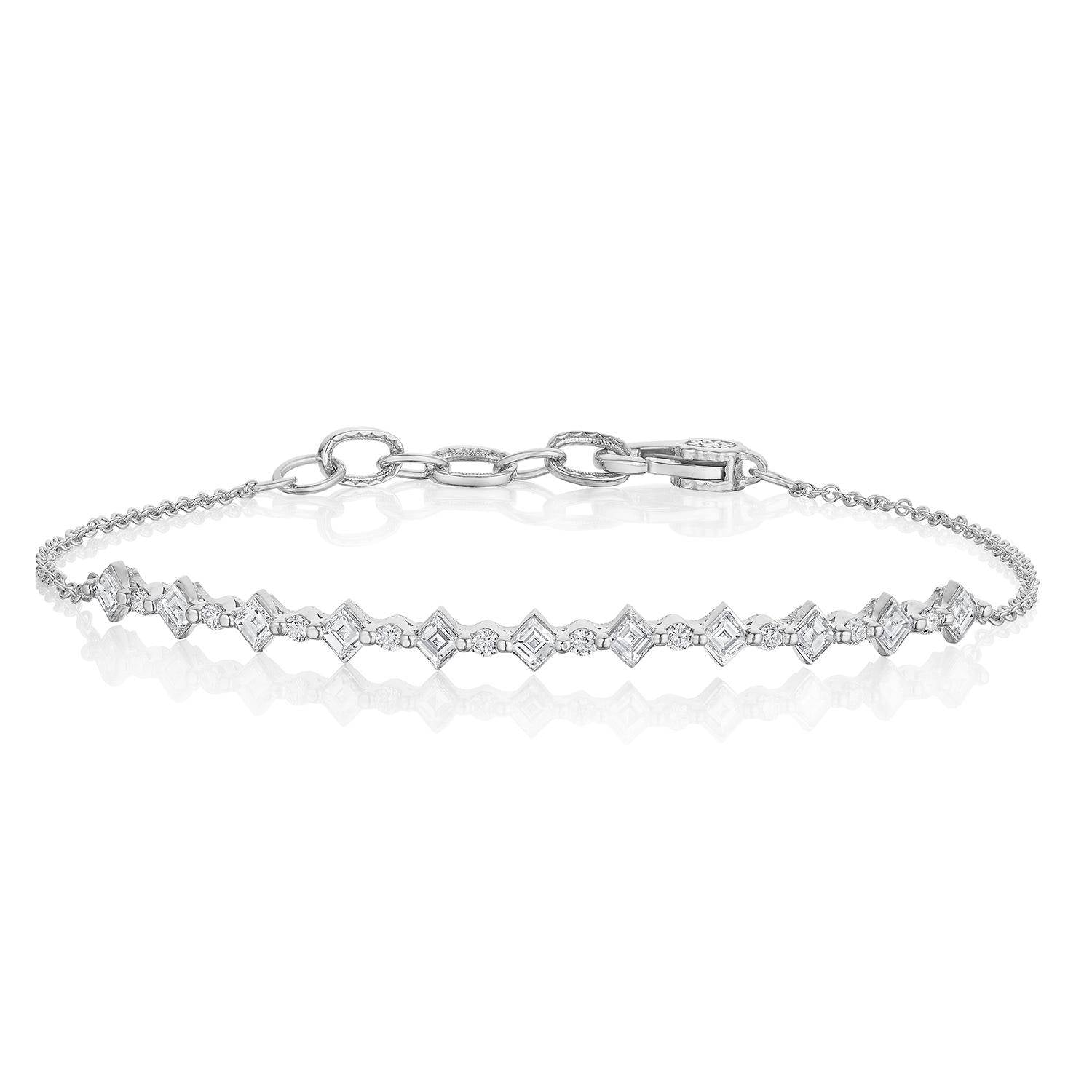 Carré and Round Diamond Bracelet in 18kt White Gold