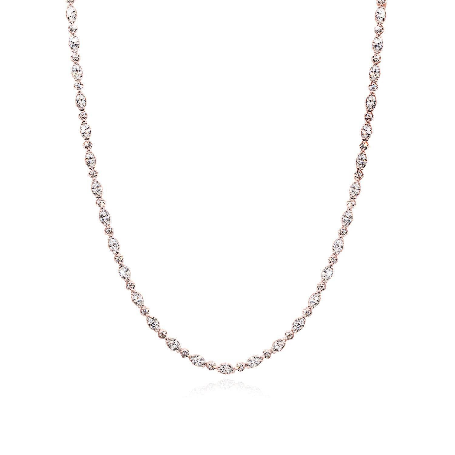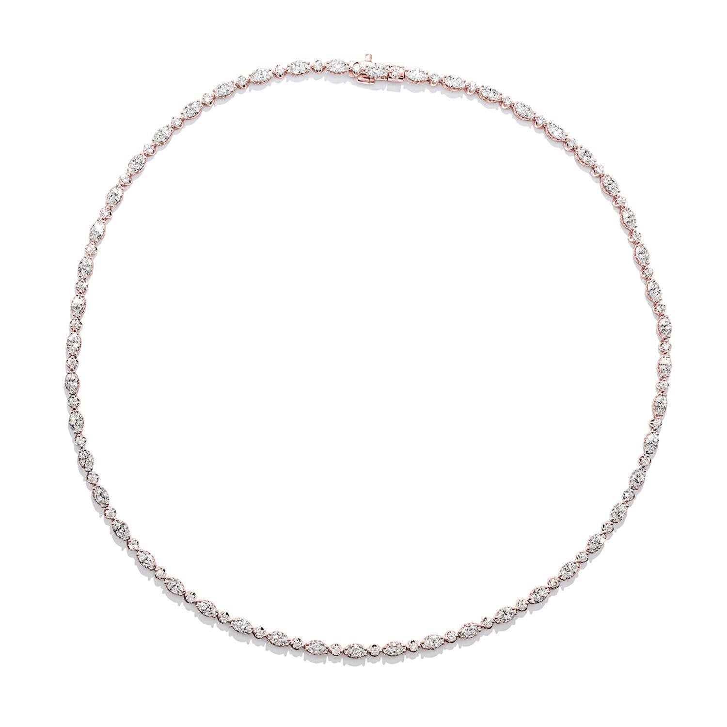 A seamless string of alternating round and marquise dimonds on a rose gold chain shimmers across the neckline. TACORI Classic Crescent detailing on the side profile silhouette adds all-angle shine and texture.