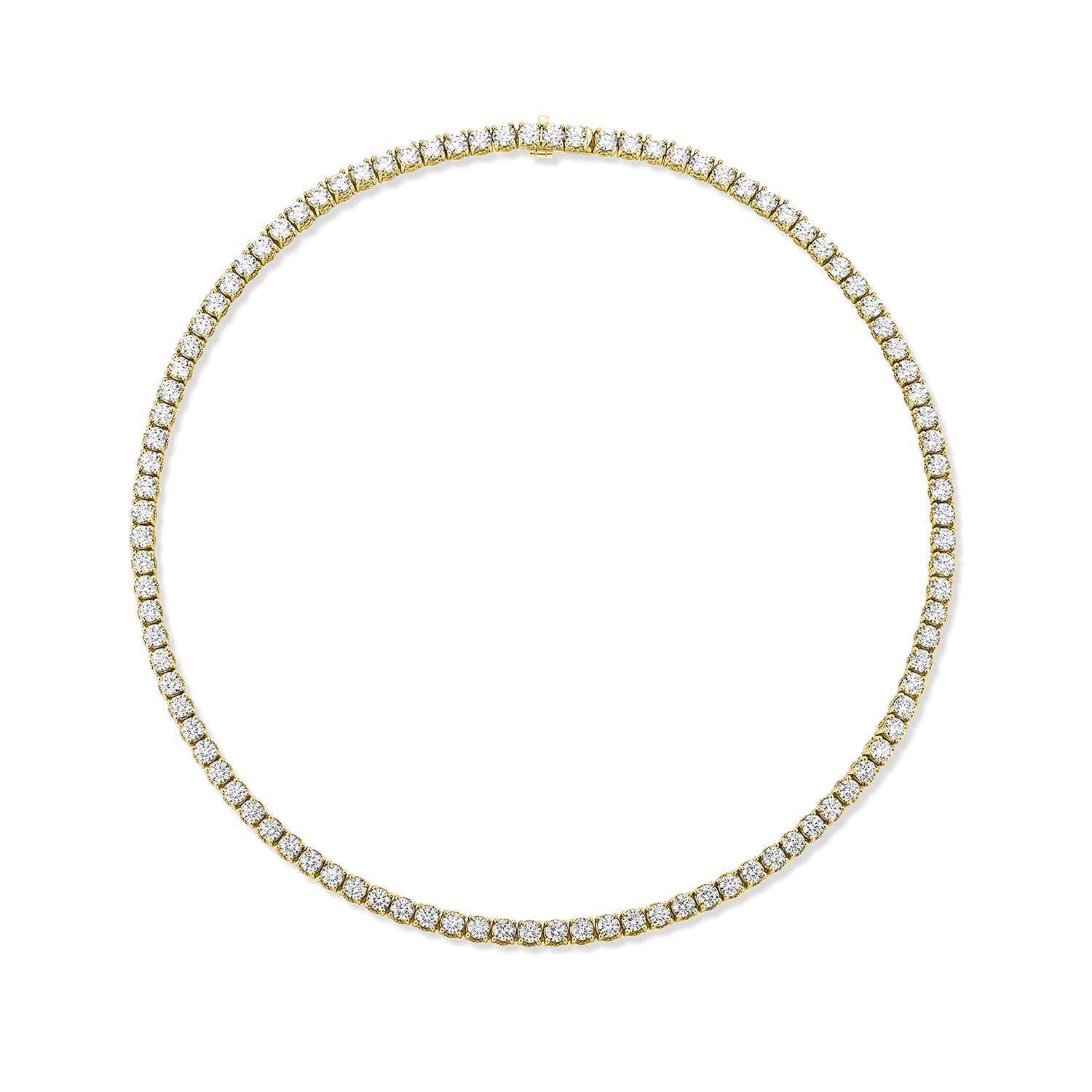 "Shimmering across the neckline, the Riviera necklace illustrates the power of meticulous craftsmanship to mesmerize with a simple design. The seamless string of round-brilliant diamonds are hand-selected for their impeccable cut and clarity, and hand-set with the a precision to forever hold a sublime form."
