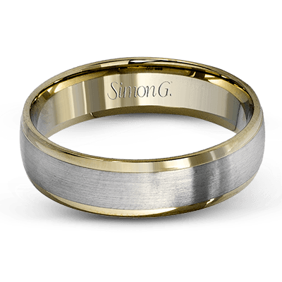 Featuring a modern twist on a classic wedding band design, this contemporary men's wedding band has an eye-catching gold outline.