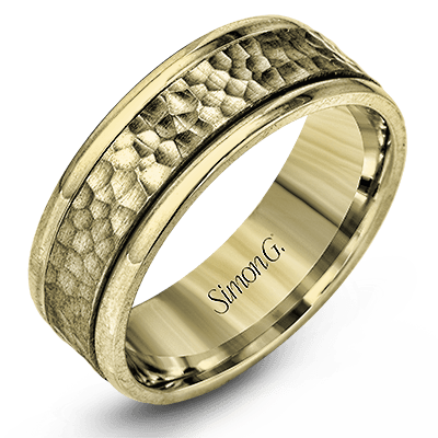 A hammered platinum center highlights the contemporary design of this men's wedding band, outlined with sleek rims. Width 7.50mm