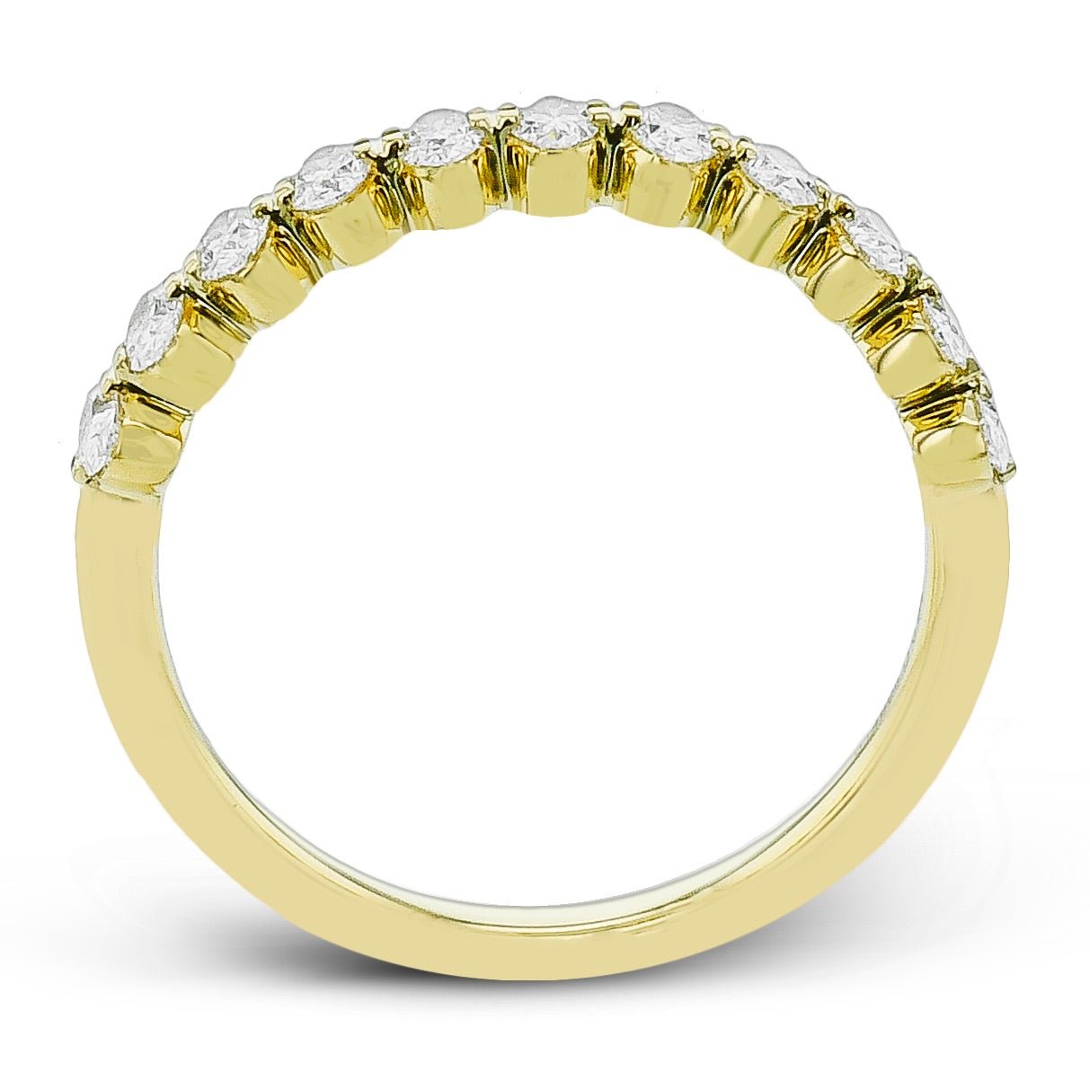 This stunning yellow gold band features a row of brilliant round diamonds, adding a touch of elegance and sparkle.