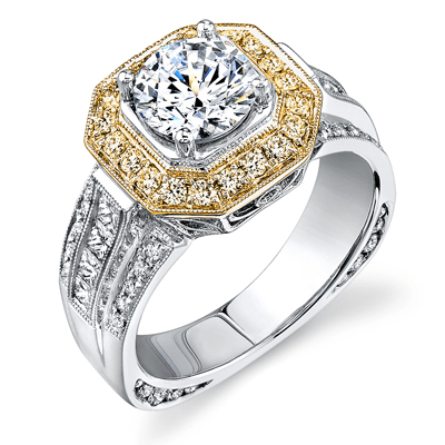 Round-cut Halo Engagement Ring in 18k Gold with Diamonds
