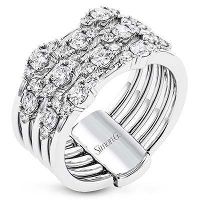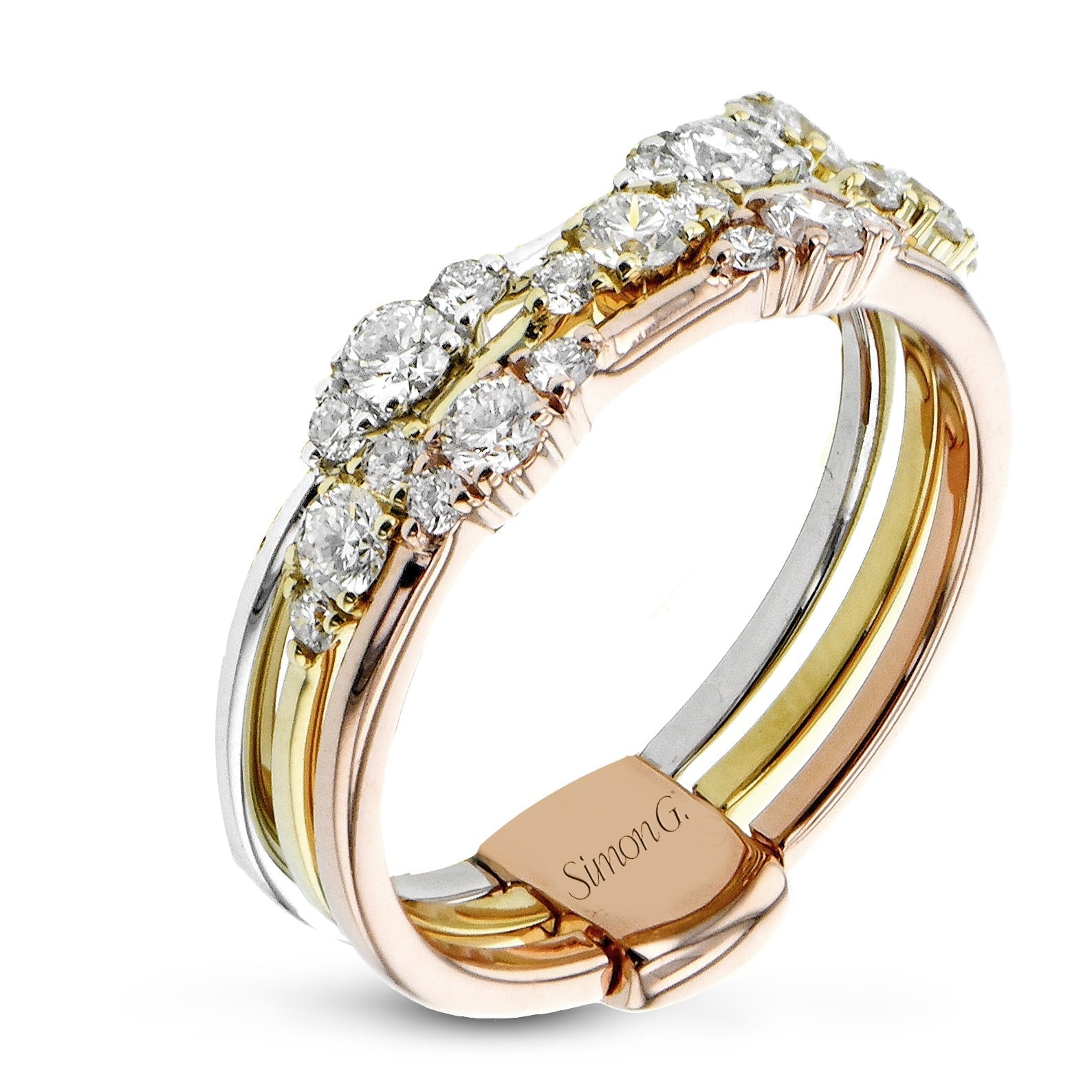 This five row ring gives the look of stacked bands but the comfort and security of one ring. created in 18k white, yellow and rose gold and featuring 1.07cttw diamonds, this ring pairs perfectly with any look.