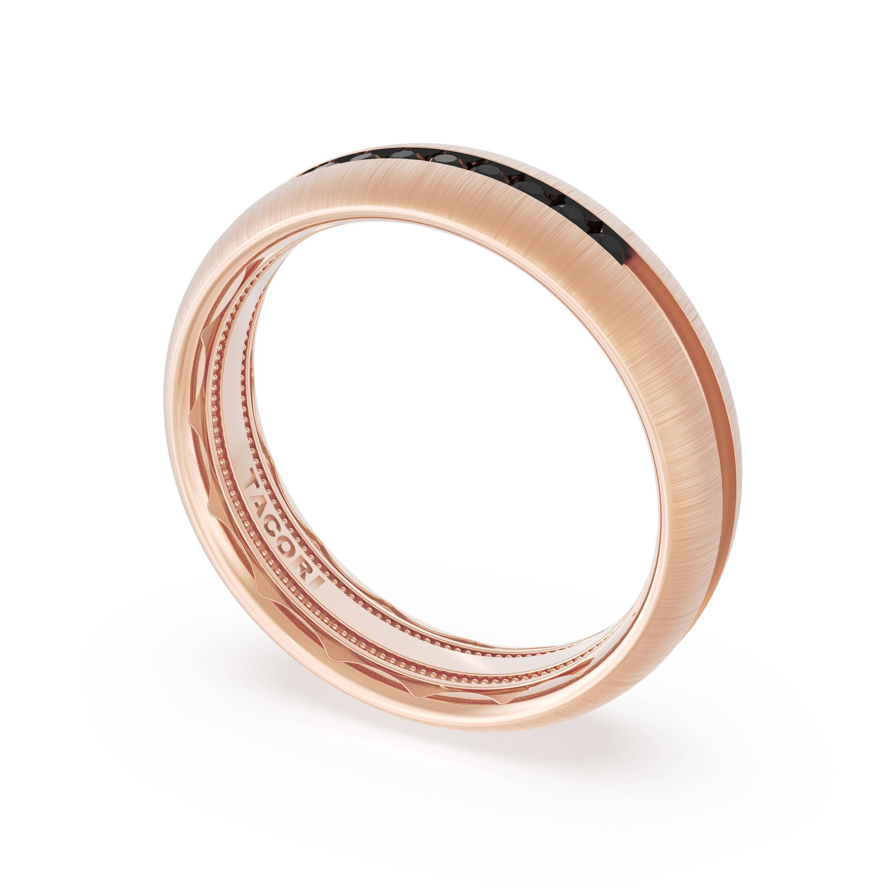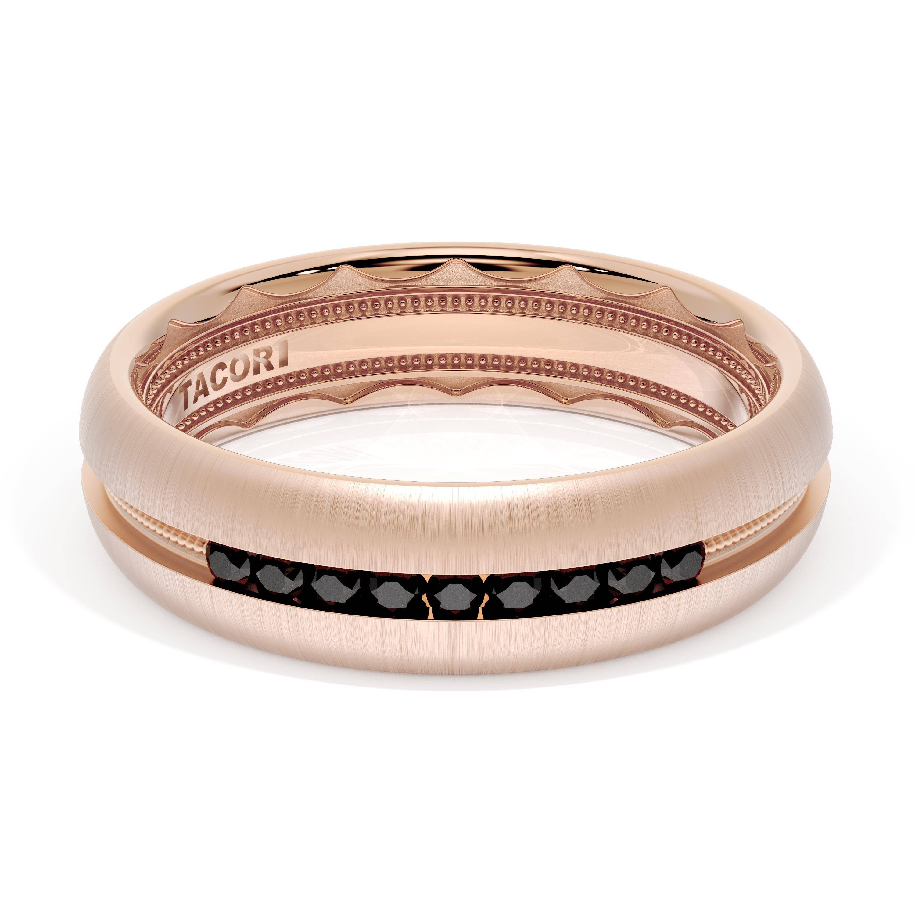 Rounded Satin Finish Black Diamond Wedding Band in 18kt Rose Gold