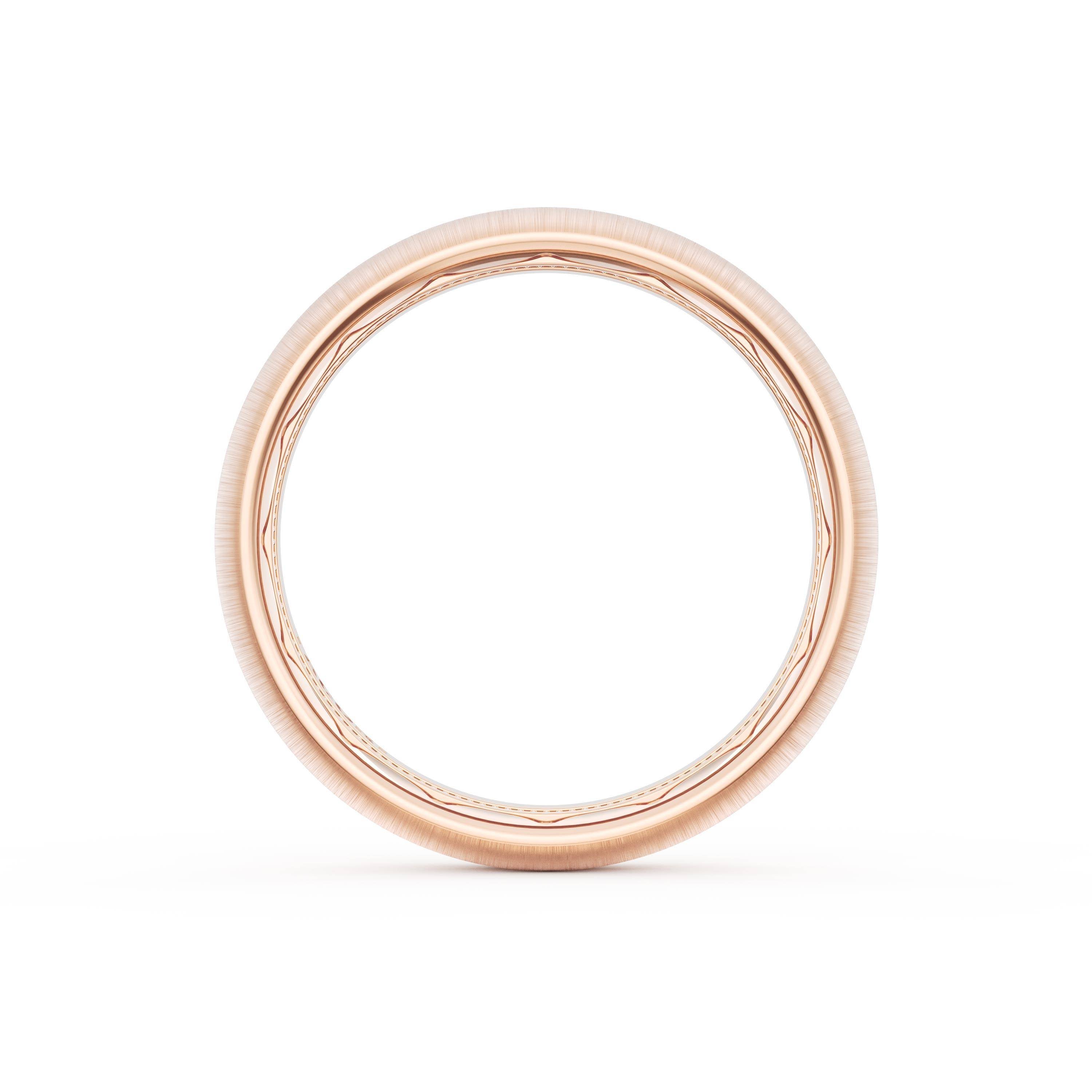 This gently rounded band features a diamond and milgrain decorated ceiling with a satin finish and milgrain detailing on the inner face.