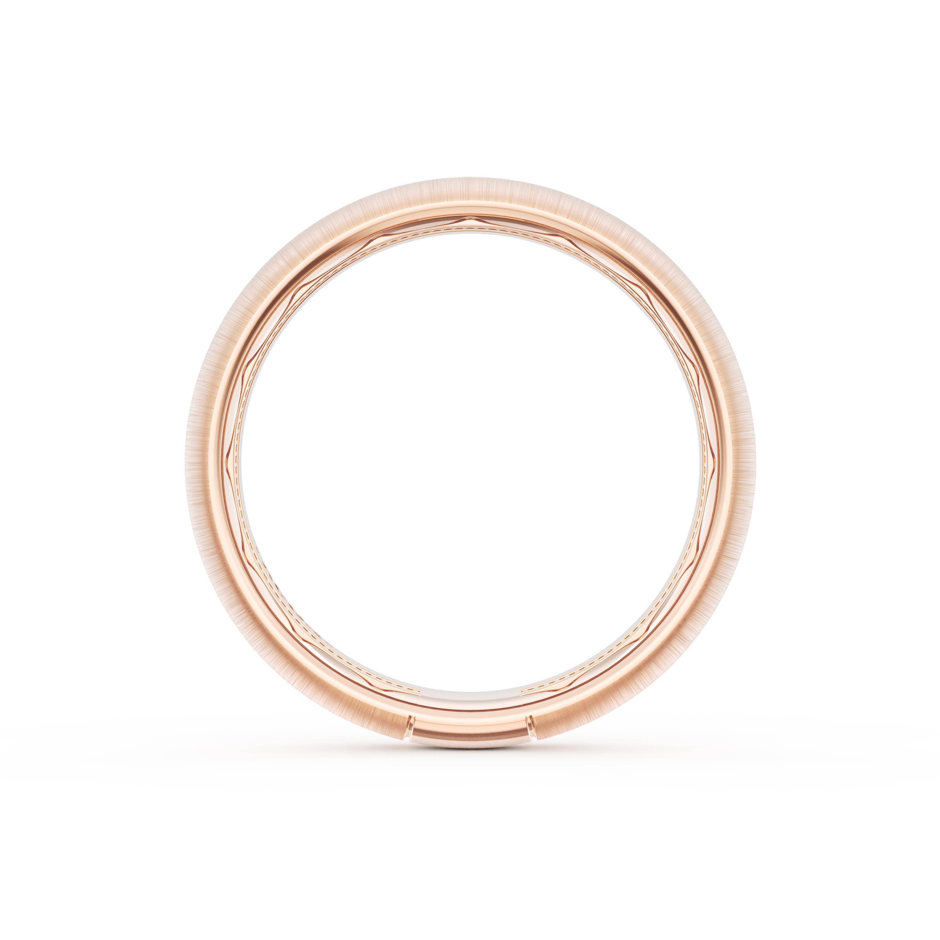 This gently rounded band of 18kt Rose Gold features a diamond and milgrain decorated ceiling with a satin finish and milgrain detailing on the inner face.