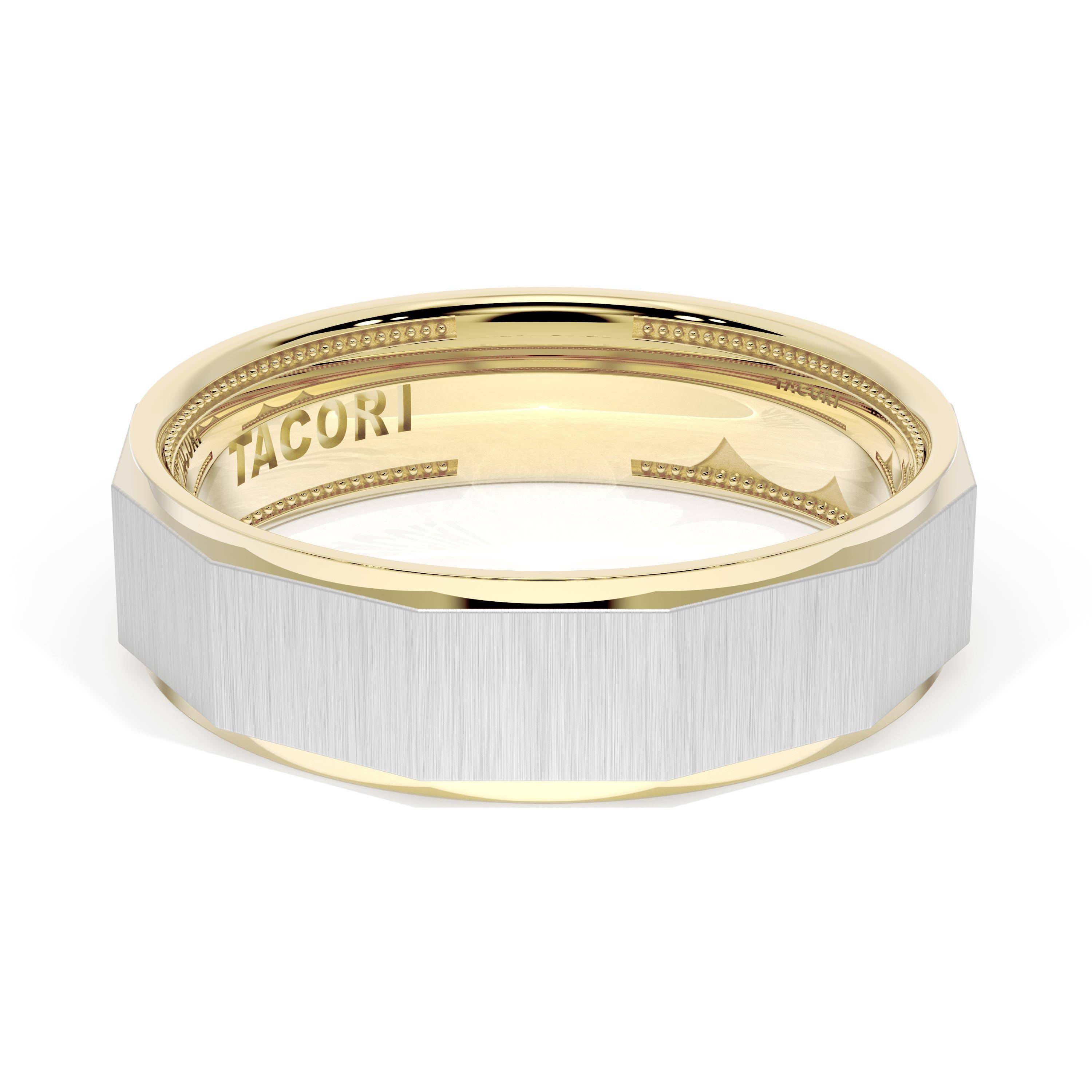 Satin Finish Faceted Wedding Band in 18kt Yellow Gold & Platinum