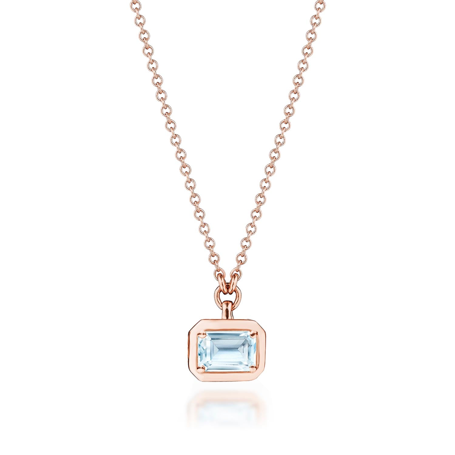 "A bezel pendant of captivating depths. The high polish frame enthralls the Sky Blue Topaz center. On the reverse, TACORI Crescent detailing and pinpoint mined diamonds add dimension."