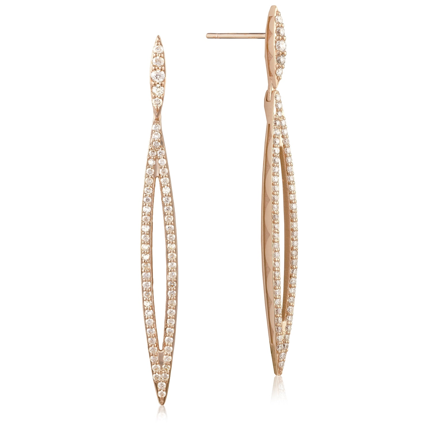 Is anything more versatile and enduring than a pair of diamond earrings? A modern twist on the classic diamond earrings, these elongated marquise shape strings of diamonds are sure to elevate your every look.