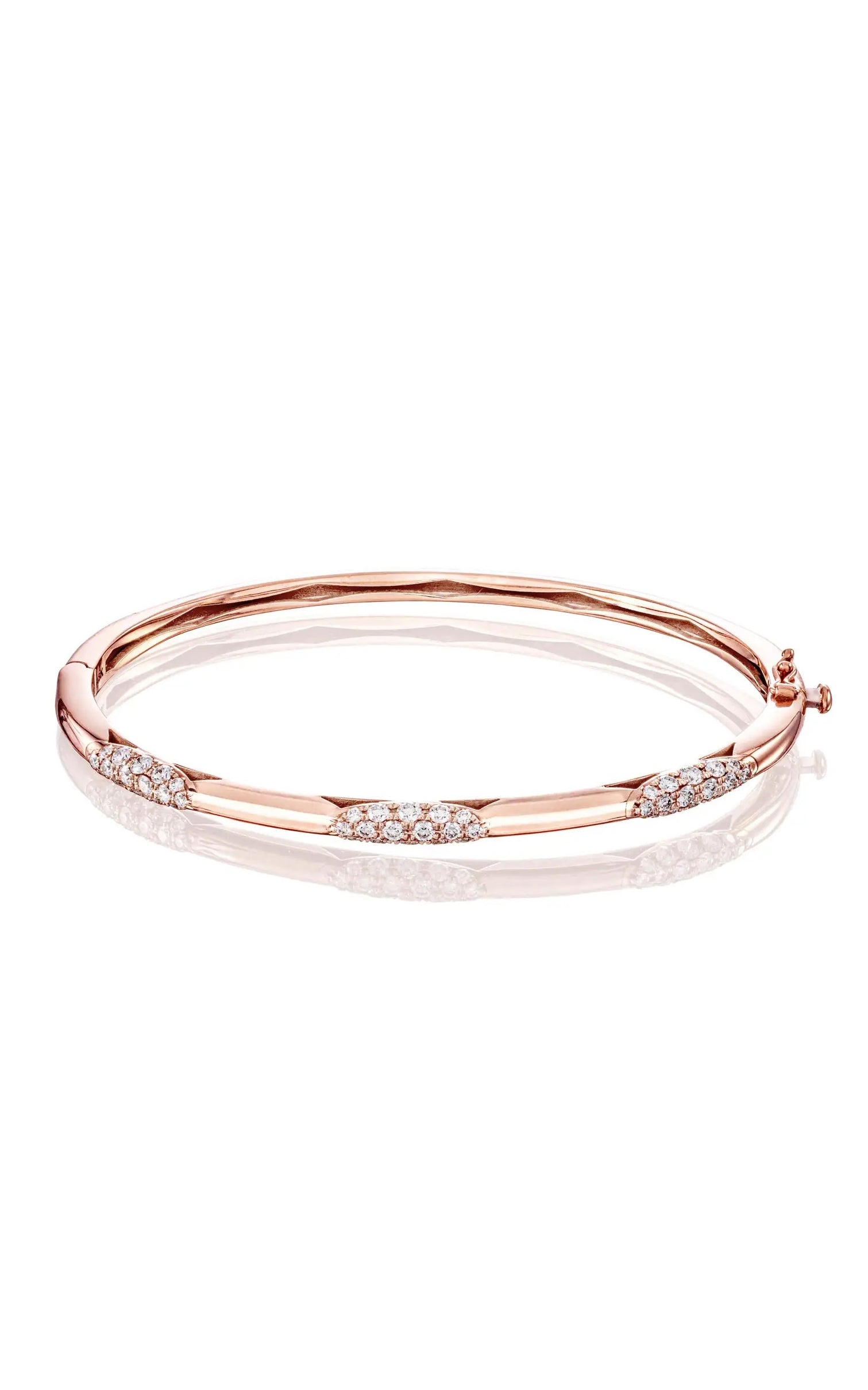 "Three ellipses formed by sparkling, Diamond-studded TACORI crescents showcase unparalleled craftsmanship. Set on a delicate band of 18k gold with interior crescent detailing, this bangle is a contemporary and elegant showstopper."