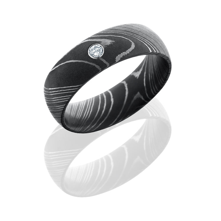 Damascus Steel 8mm Domed Band with Bezel Set .05ct White Round Diamond