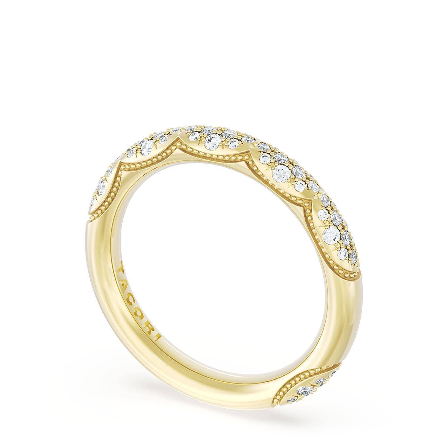 "The Founder's Crescent Fabric wraps around the ceiling of this 3.0mm band with diamond studded, sculpted detail."