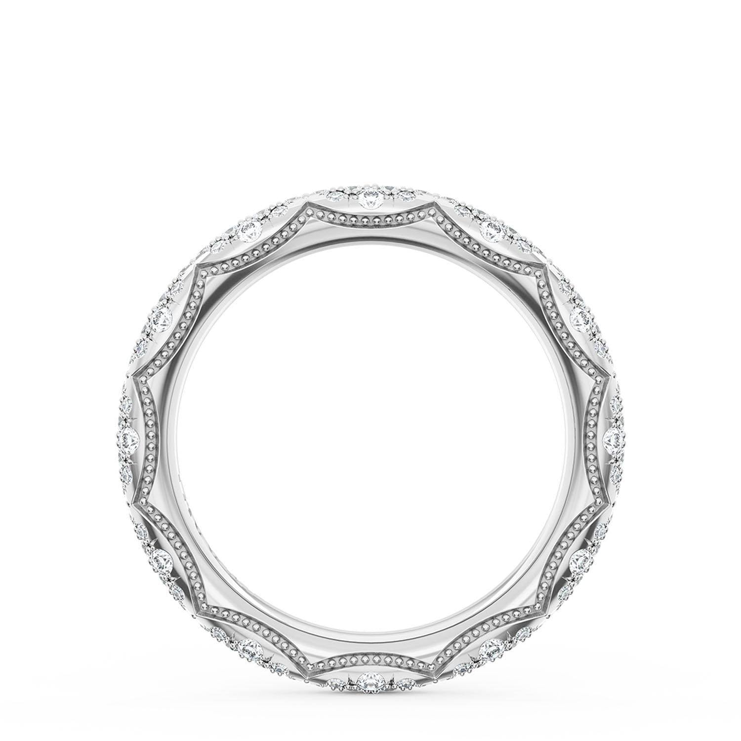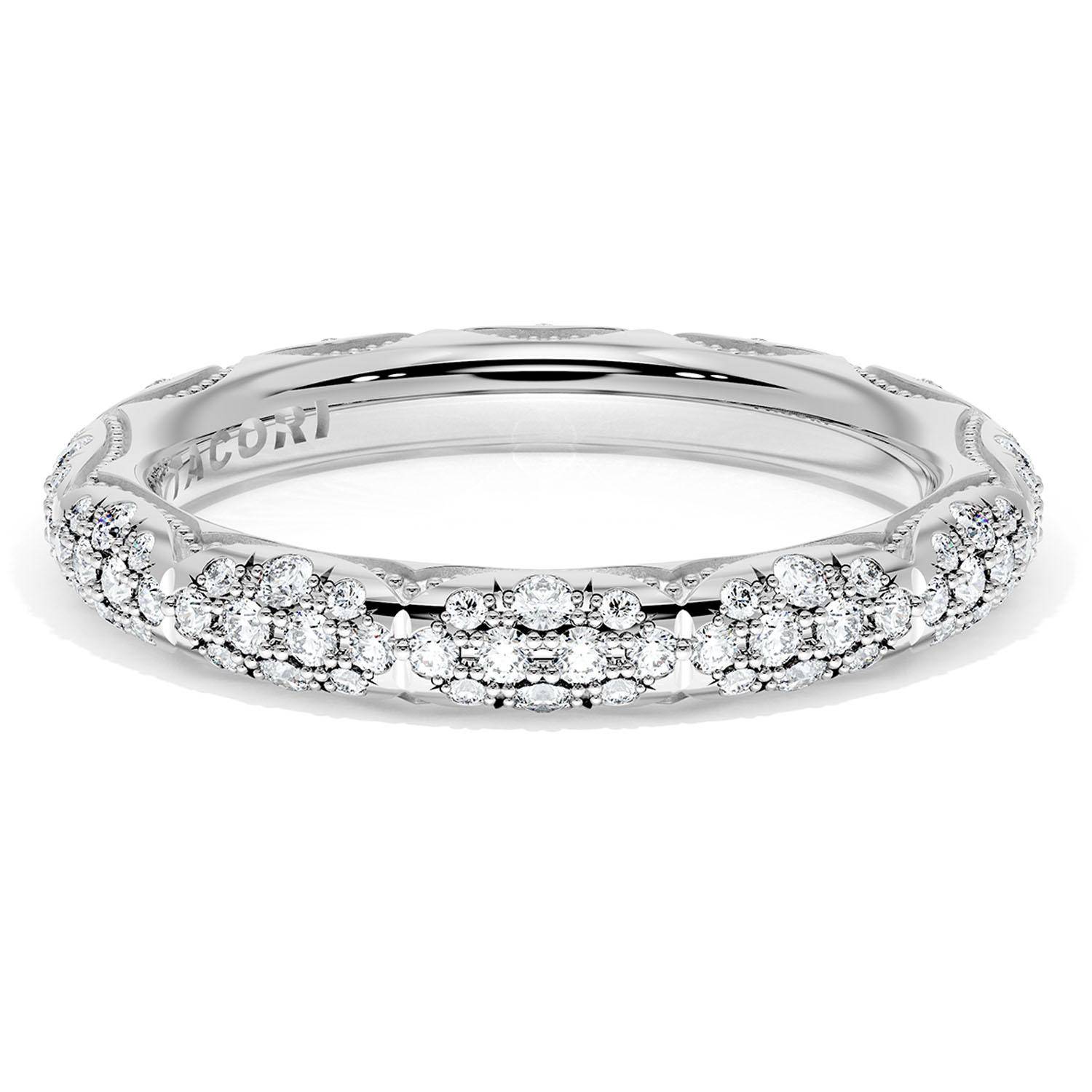 "The Founder's Crescent Fabric wraps around the ceiling of this 3.0mm band with diamond studded, sculpted detail."