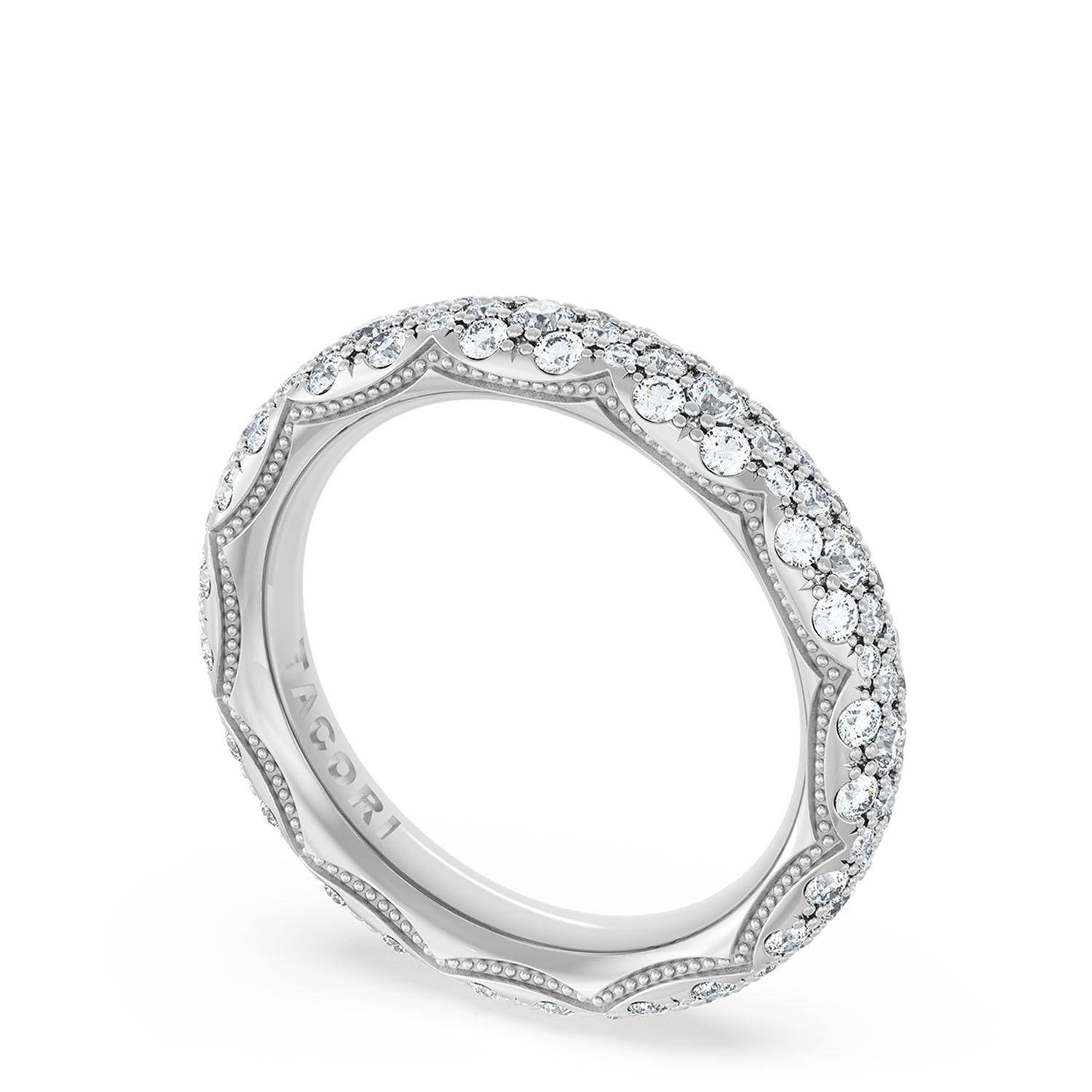 "The Founder's Crescent Fabric wraps around the ceiling of this 4.0mm band with diamond studded, sculpted detail."