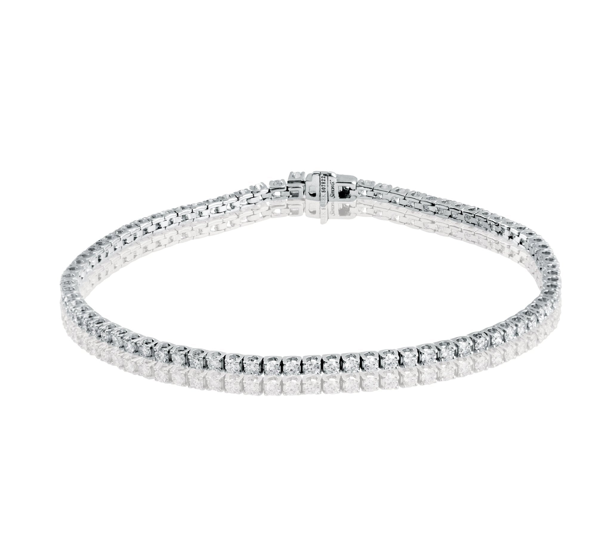 This stylish bracelet is a refined take on a classic tennis bracelet and is set with brightly shining diamonds.
