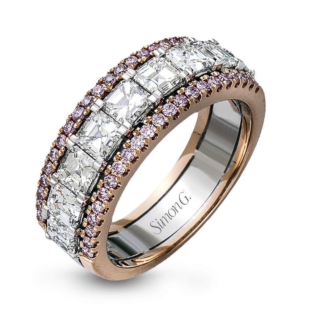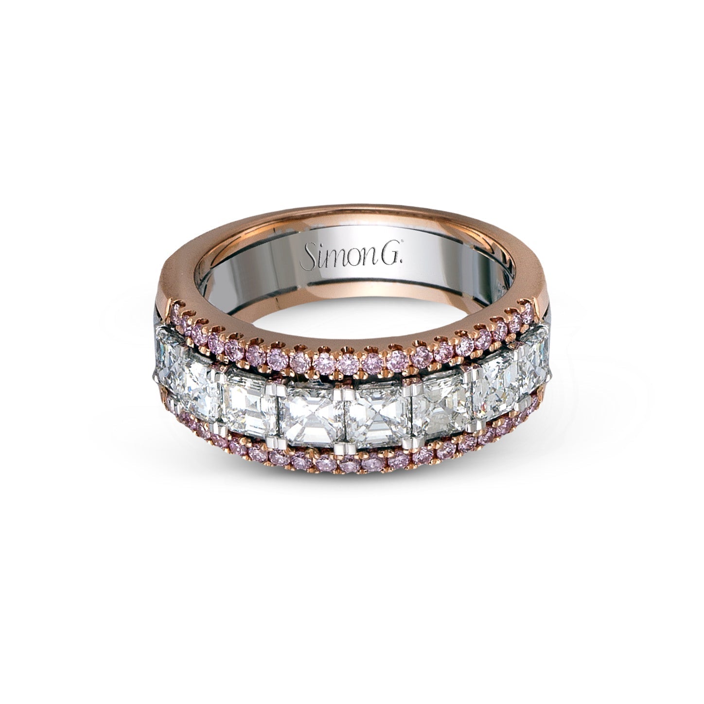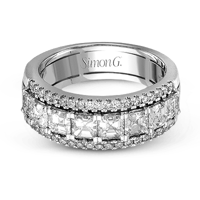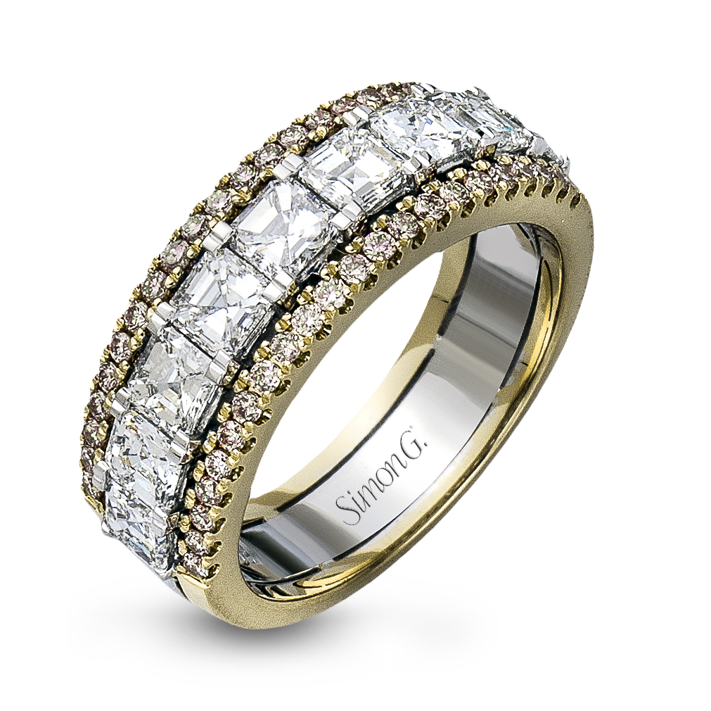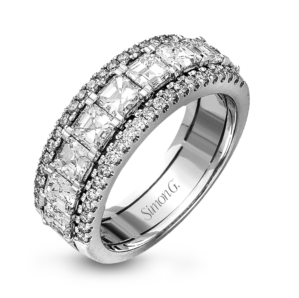 This lovely band features a contemporary design adorned with a brilliant combination of sparkling asscher and round diamonds.