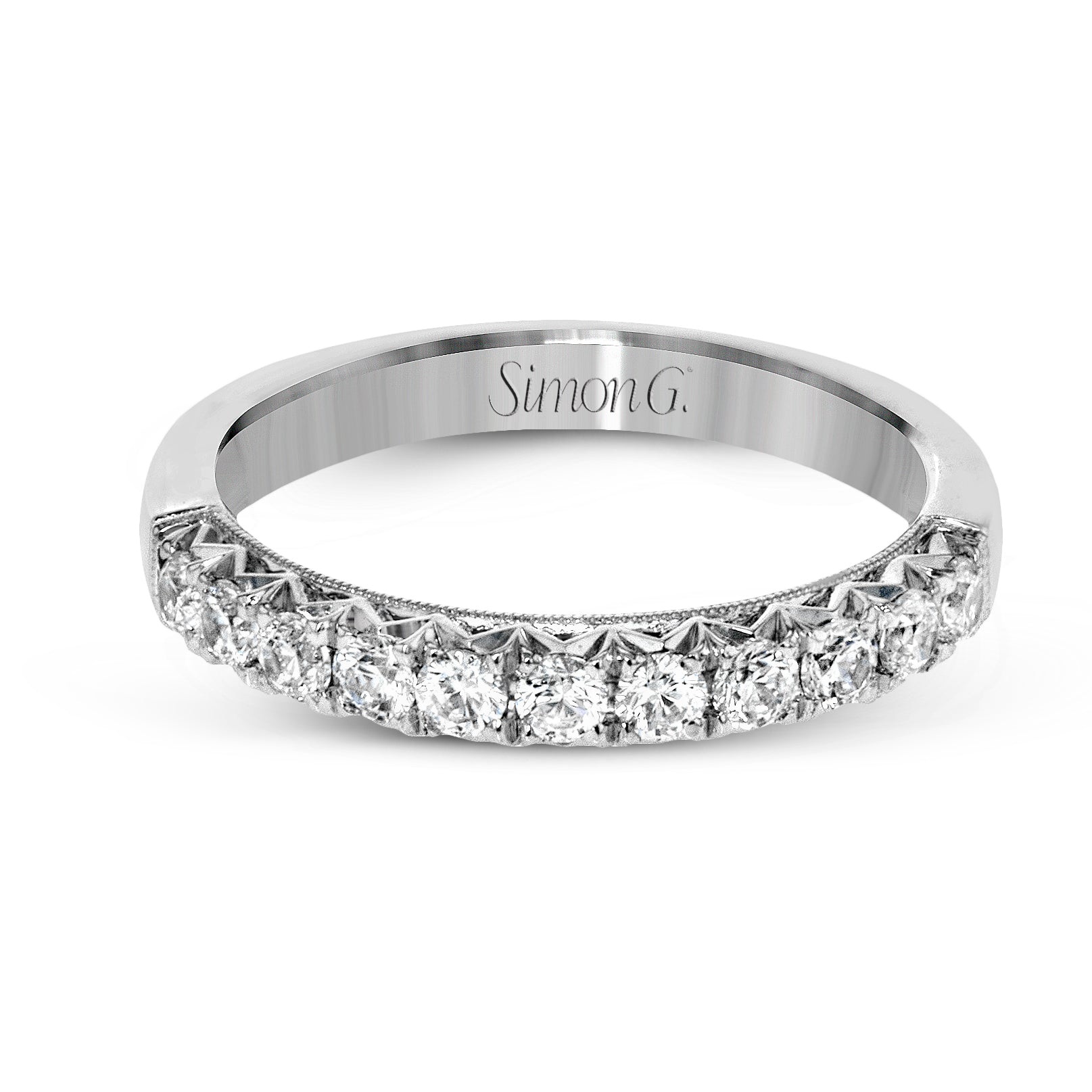 This classic wedding band features brilliant diamonds set in a distinctive, intricate style.