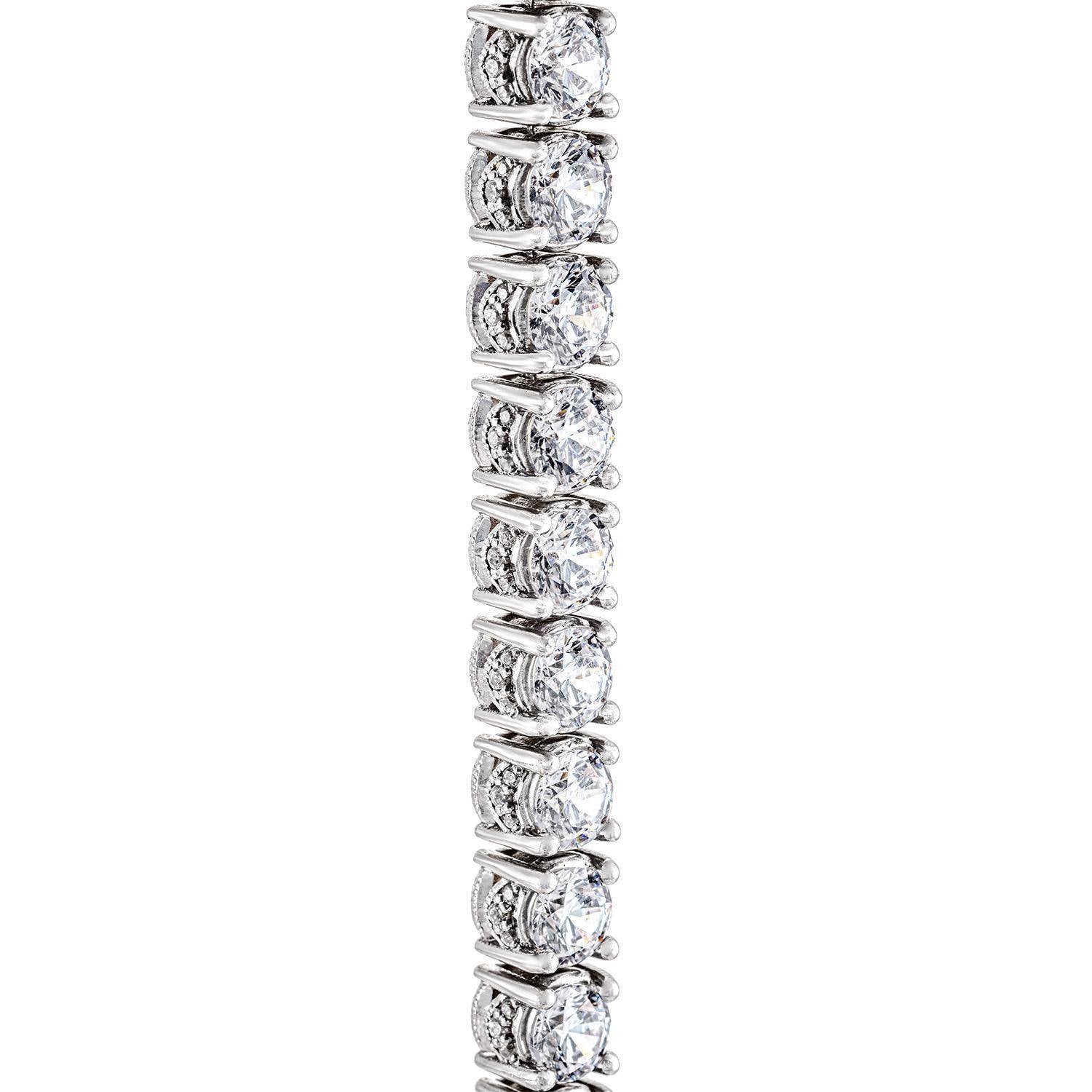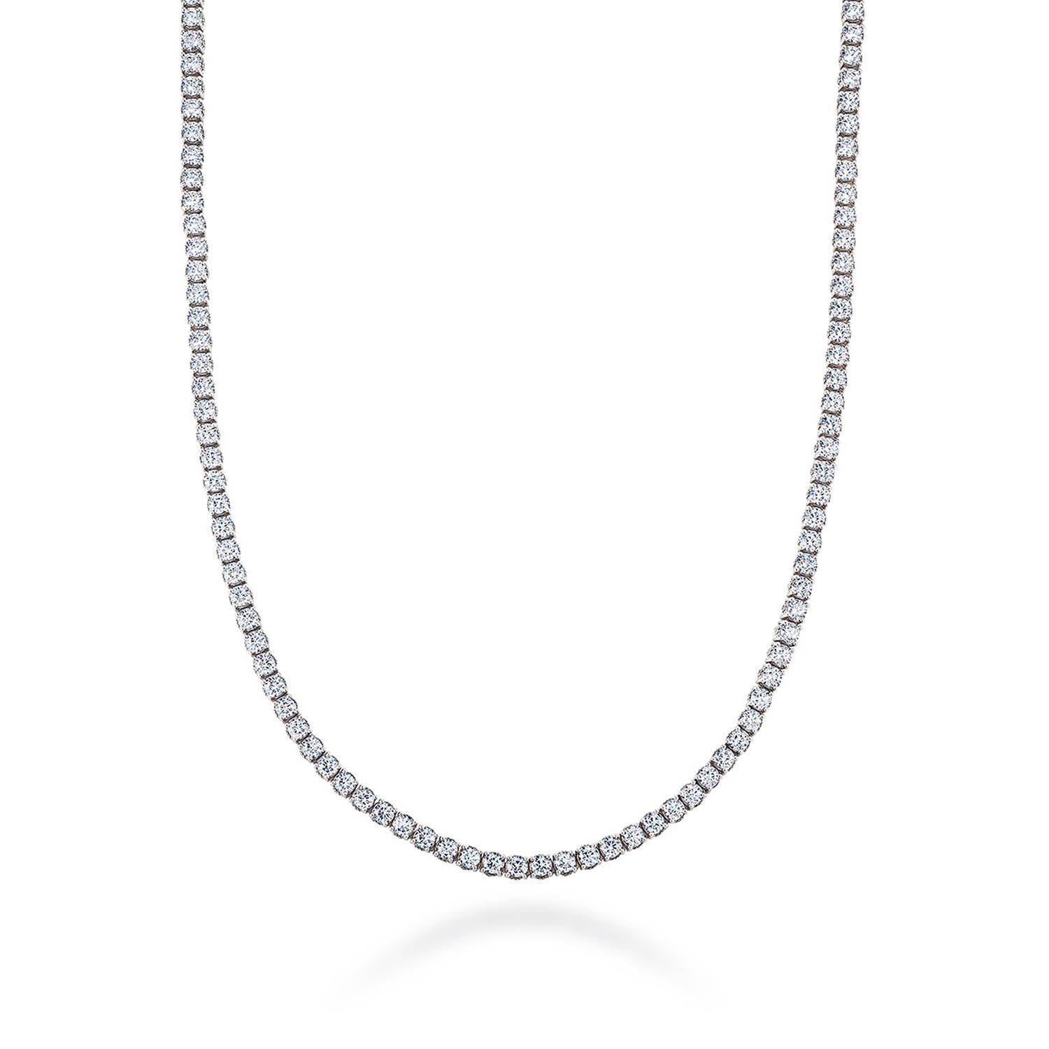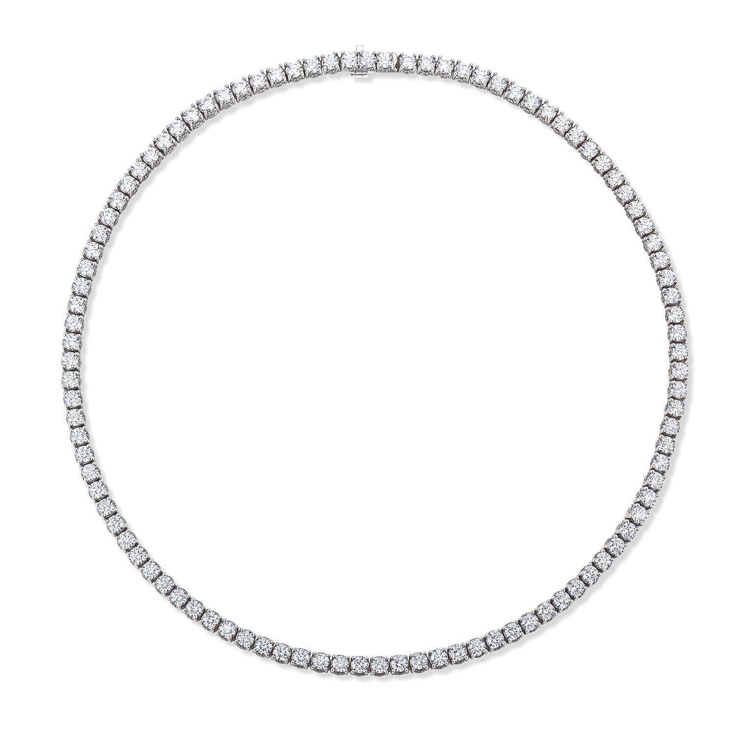 "Shimmering across the neckline, the Riviera necklace illustrates the power of meticulous craftsmanship to mesmerize with a simple design. The seamless string of round-brilliant diamonds are hand-selected for their impeccable cut and clarity, and hand-set with the a precision to forever hold a sublime form."