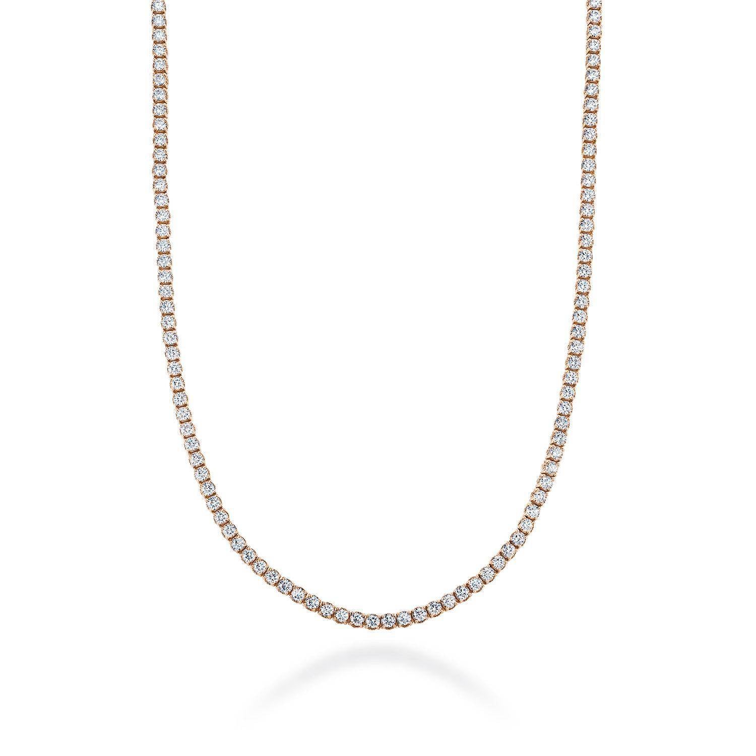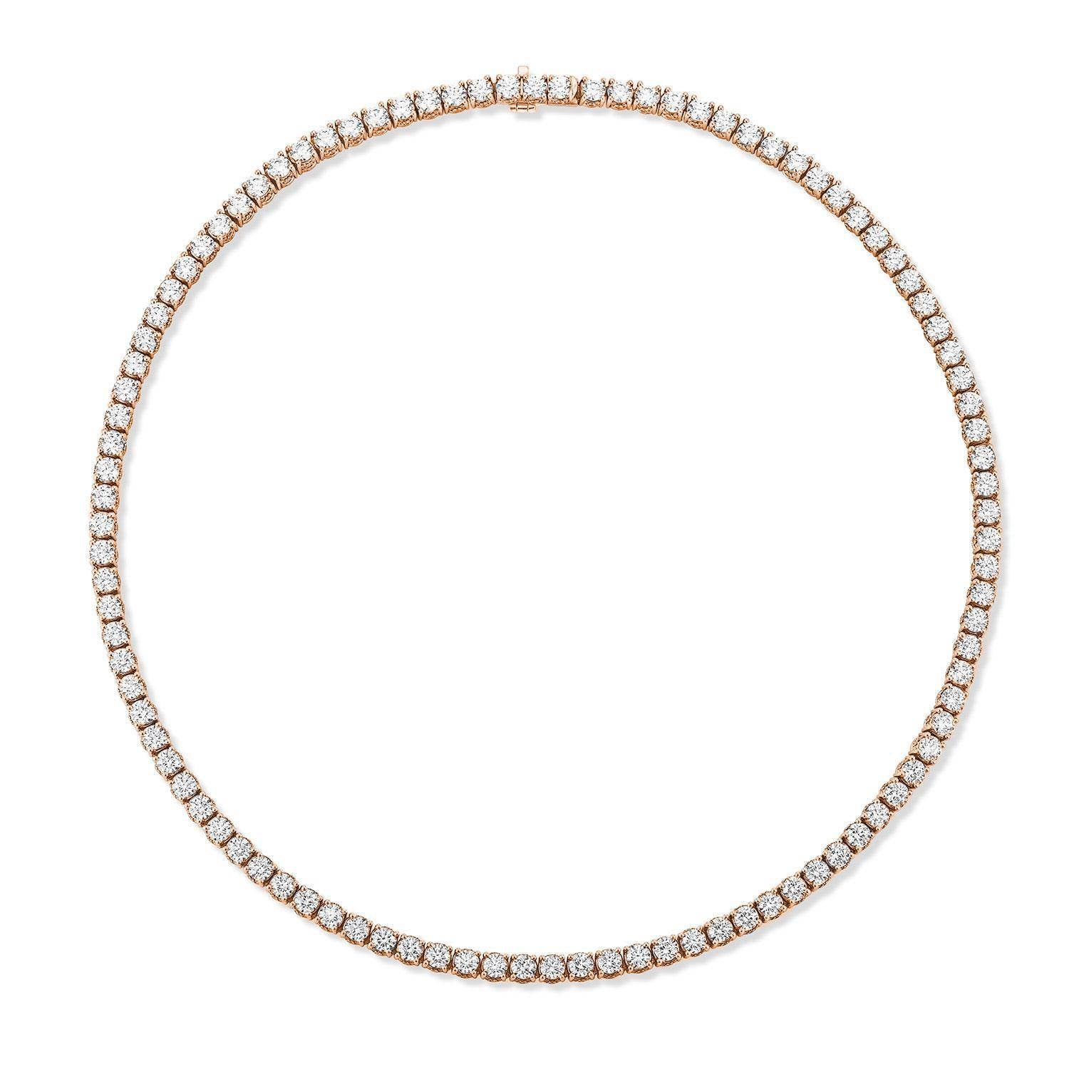 "Shimmering across the neckline, the Riviera necklace illustrates the power of meticulous craftsmanship to mesmerize with a simple design. The seamless string of round-brilliant diamonds are hand-selected for their impeccable cut and clarity, and hand-set with the a precision to forever hold a sublime form."