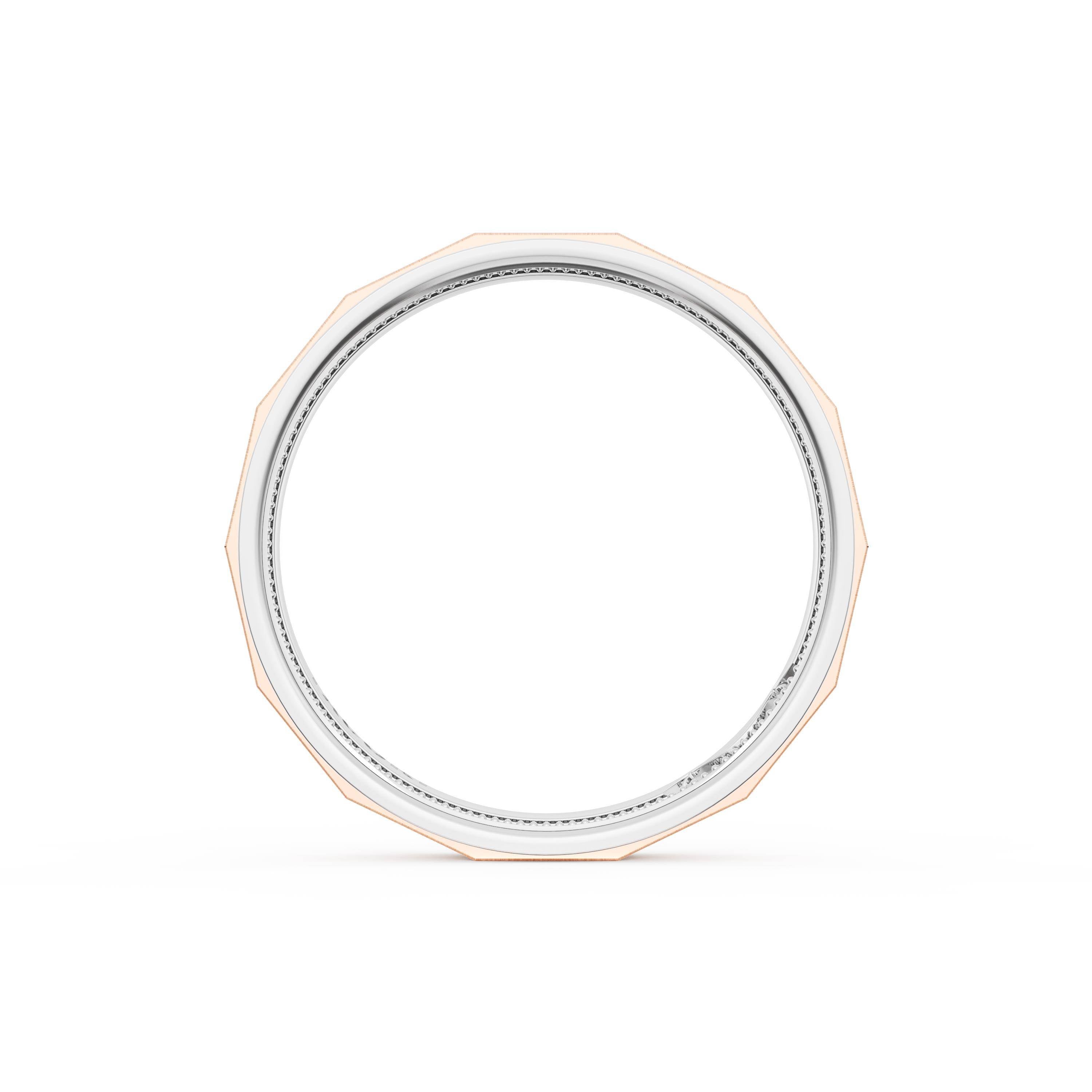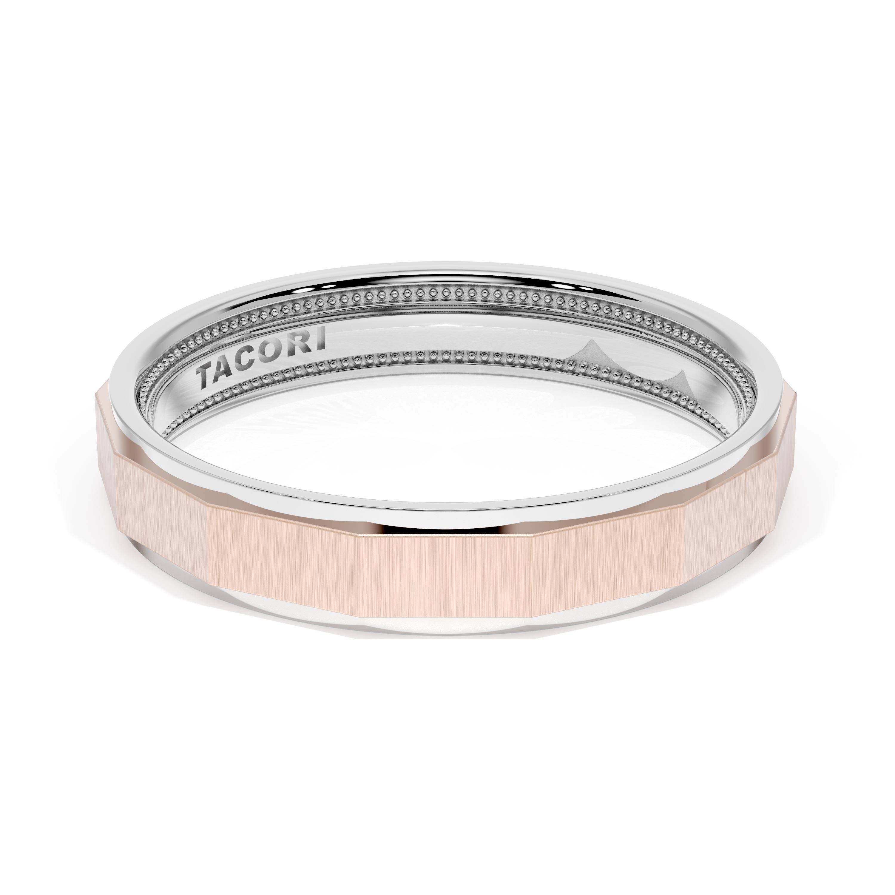Satin Finish Faceted Wedding Band in 18kt White Gold & 18kt Rose Gold
