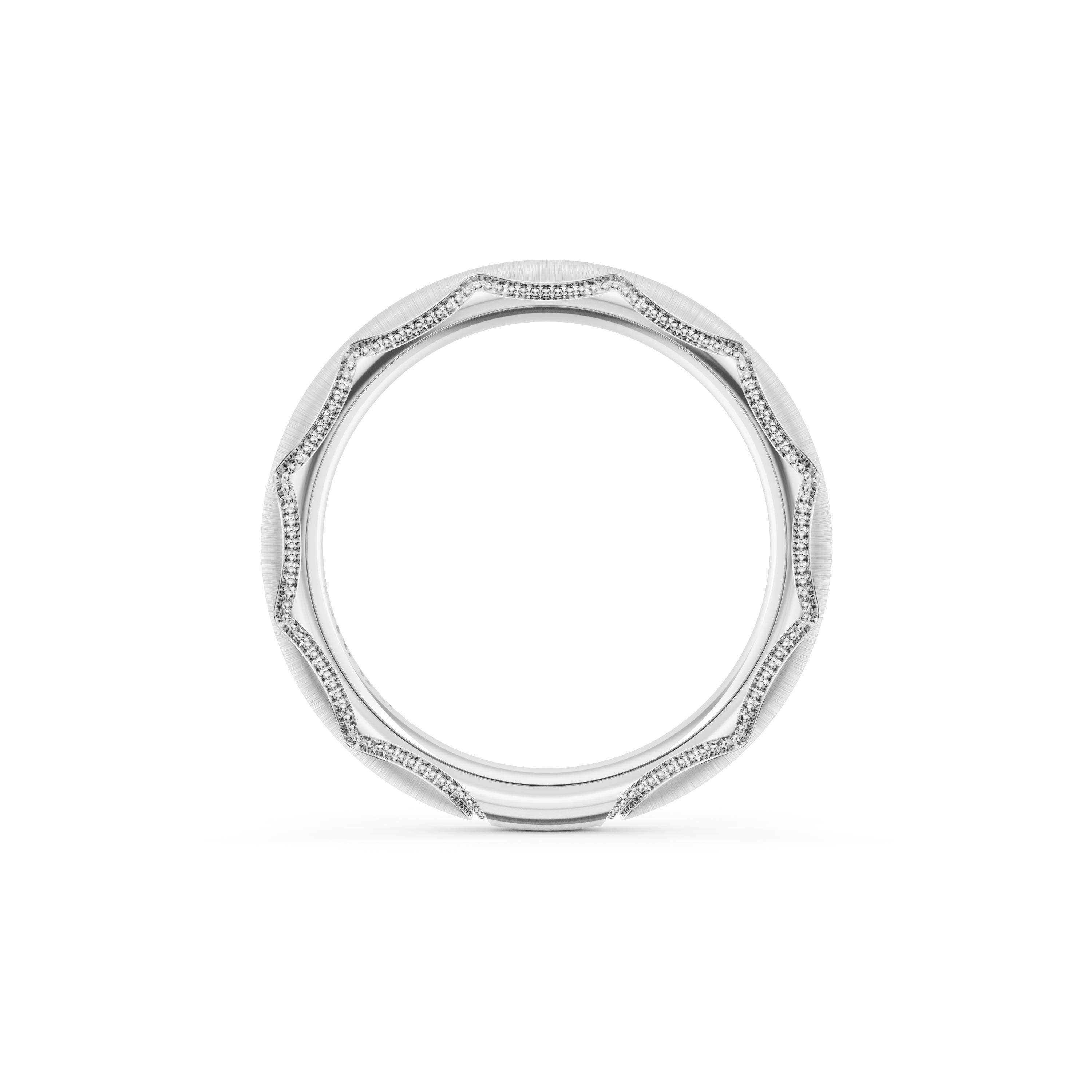 This bold and modern cigar-style 18K White Gold band with clean lines gets a touch of texture from milgrain Crescent detailing on the silhouette.