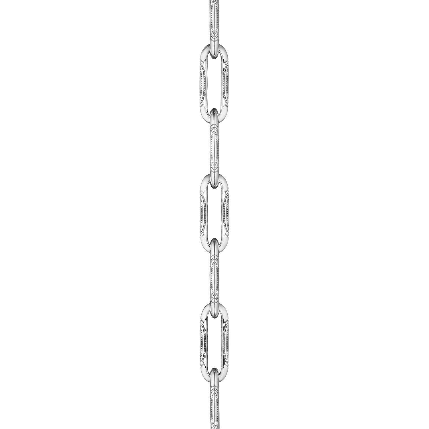 This high polish silver link necklace is accented with nested milgrain ellipses that add depth and dimension.